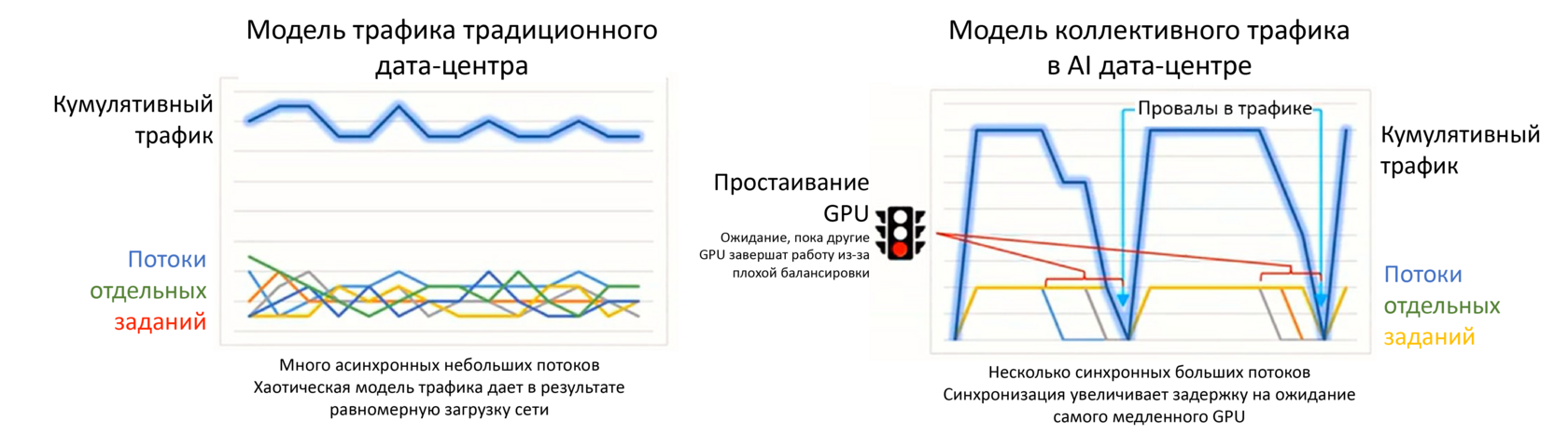 Требования к сети и модели трафика AI дата-центра сильно отличаются от традиционных дата-центров. Различными методами можно оптимизировать AI сеть, чтобы максимально использовать ее емкость. Одна из ключевых стратегий оптимизации сети заключается в повышении степени использования GPU. Хотя существует много способов сделать это, настраивая протоколы сети Ethernet, эти способы отнюдь не очевидны или тривиальны.